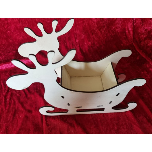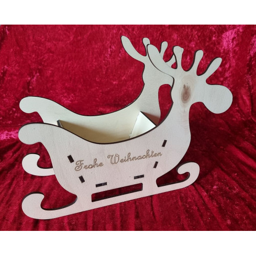 Elch mit Schlitten. Holz:  Pappeln Sperrholz 4 mm.