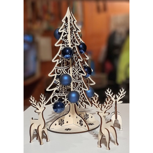 Weihnachtsbaum aus 4 mm Pappeln Sperrholz inklusive 3 Zierelchen.