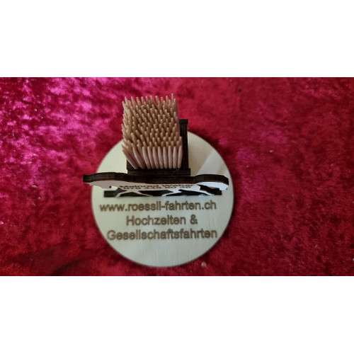 Gerne erstelle ich Ihnen ein Muster mit der Gravur. Gravur Text senden.Zahnstocher Werbegeschenk Pferd